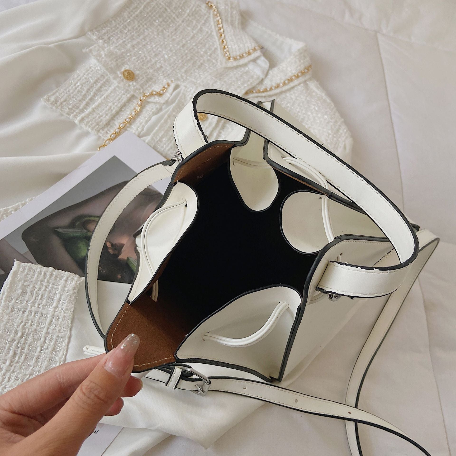 Medium size fits your phone, wallet, keys, and small essentials. Structured enough to look polished, compact enough for everyday wear.